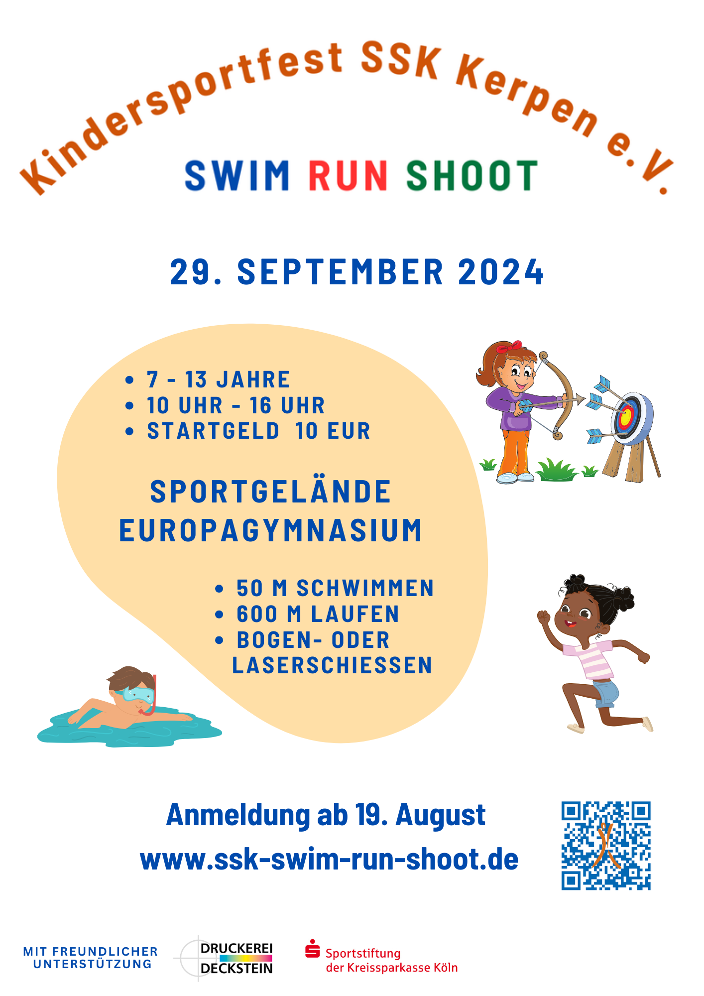 SWIM-RUN-SHOOT, ein besonderes Sportfest für Kinder am 29.9.2024
