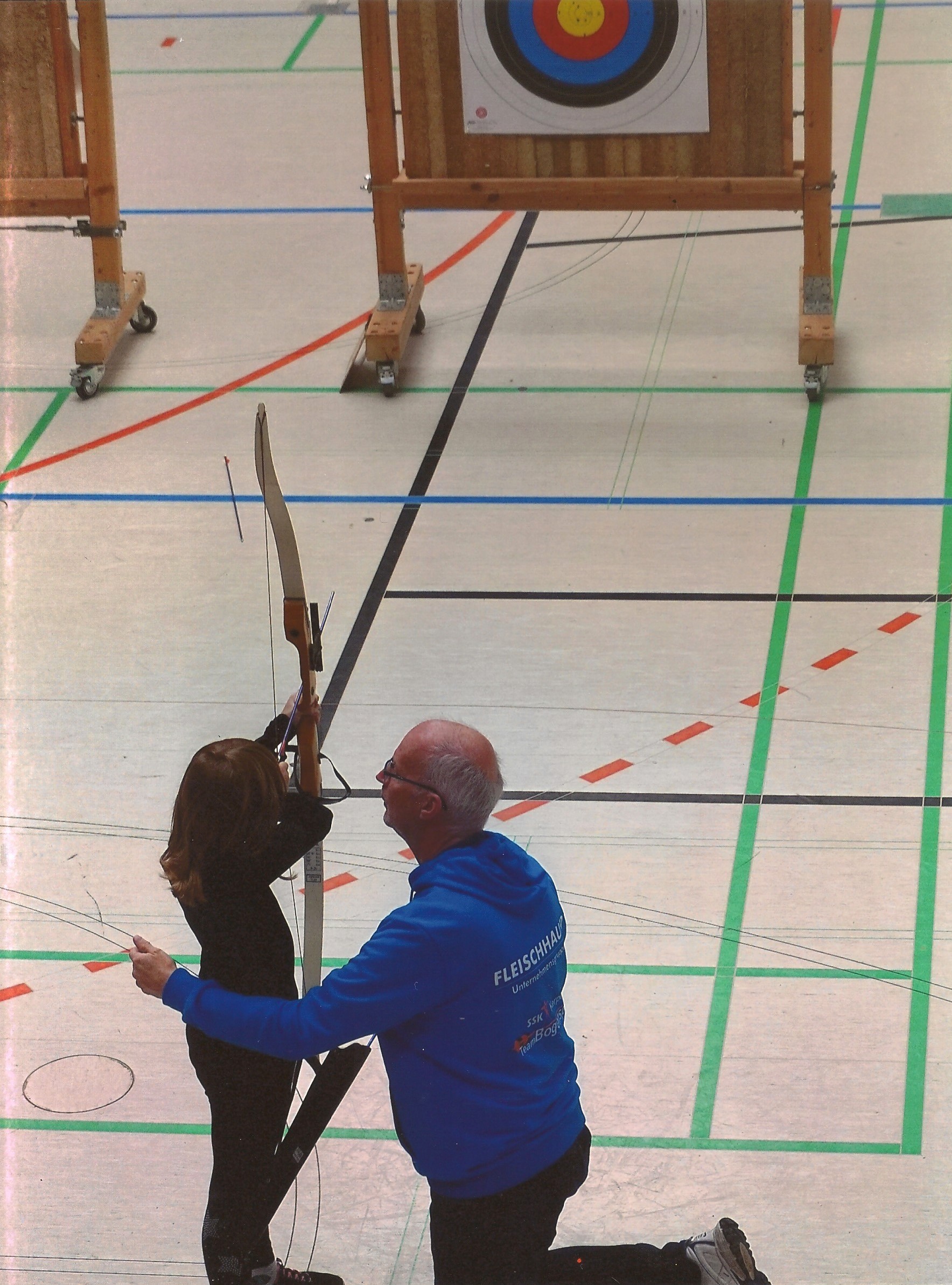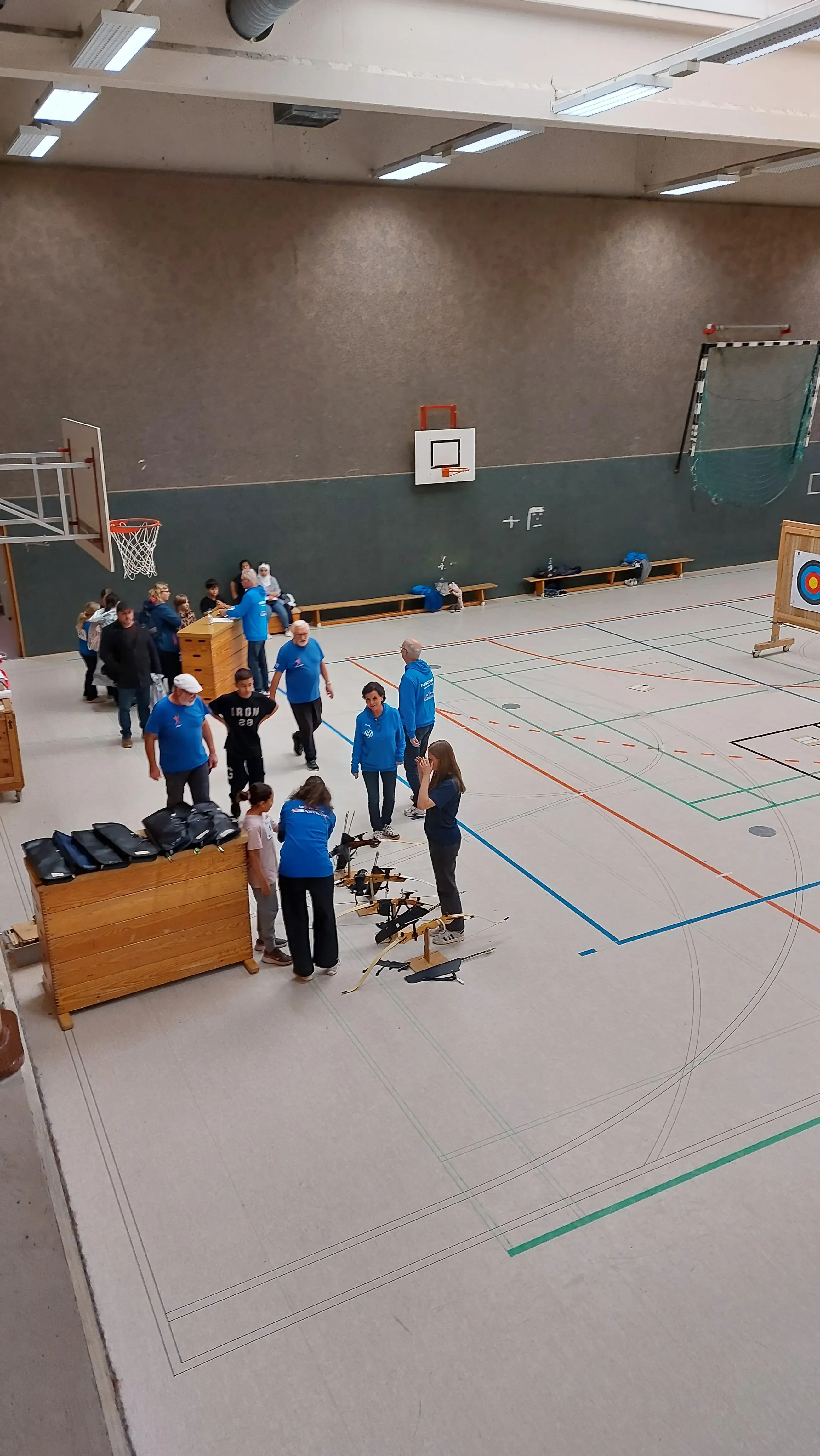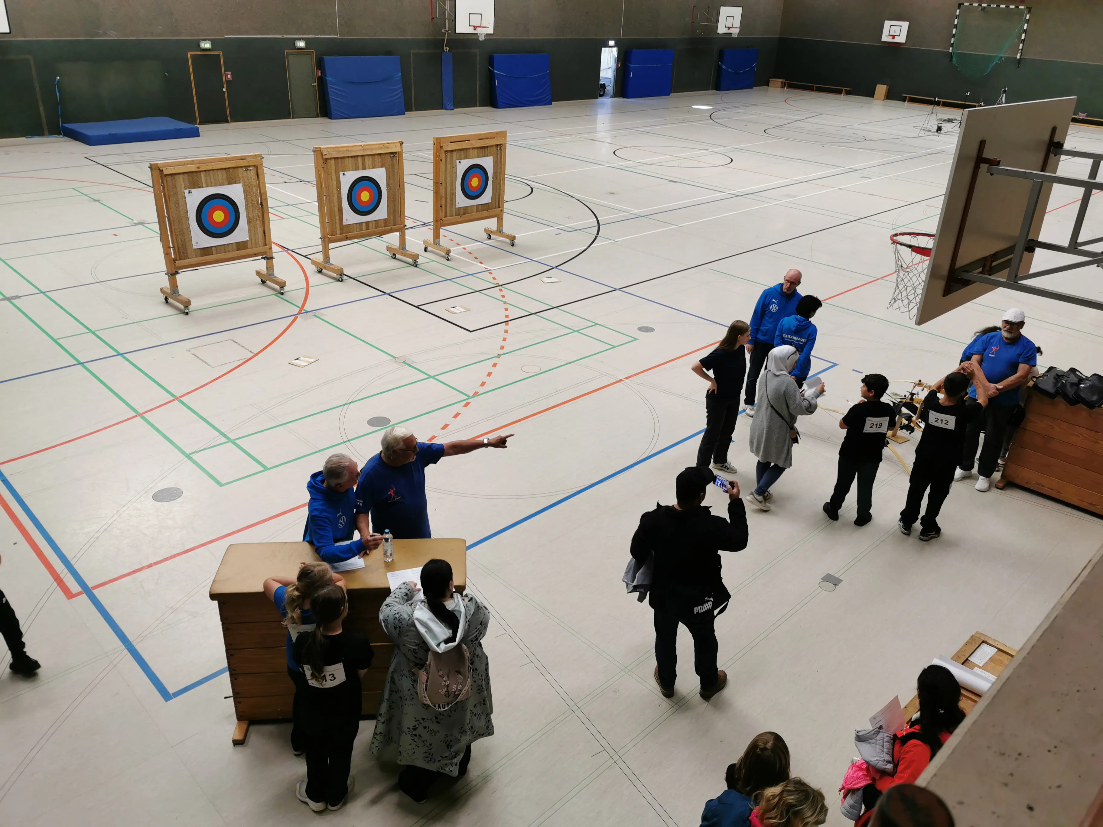 Die 10 bis 13-jährigen mussten als erste Disziplin vor dem Schwimmen bereits das Bogenschießen absolvieren. Nach einer kurzen fachkundigen Einweisung durch die Mitglieder der Abteilung Bogenschießen wurden erst einige Probepfeile abgeschossen, bevor es dann zu den 6 Wertungspfeilen ging. Als Spitzenleistung wurden hier dann sogar 50 von 60 möglichen Punkten erzielt. Als Erinnerung an den Wettkampf erhielten alle Kinder eine Urkunde, ein T-Shirt und einen Turnbeutel mit kleinen Geschenken.