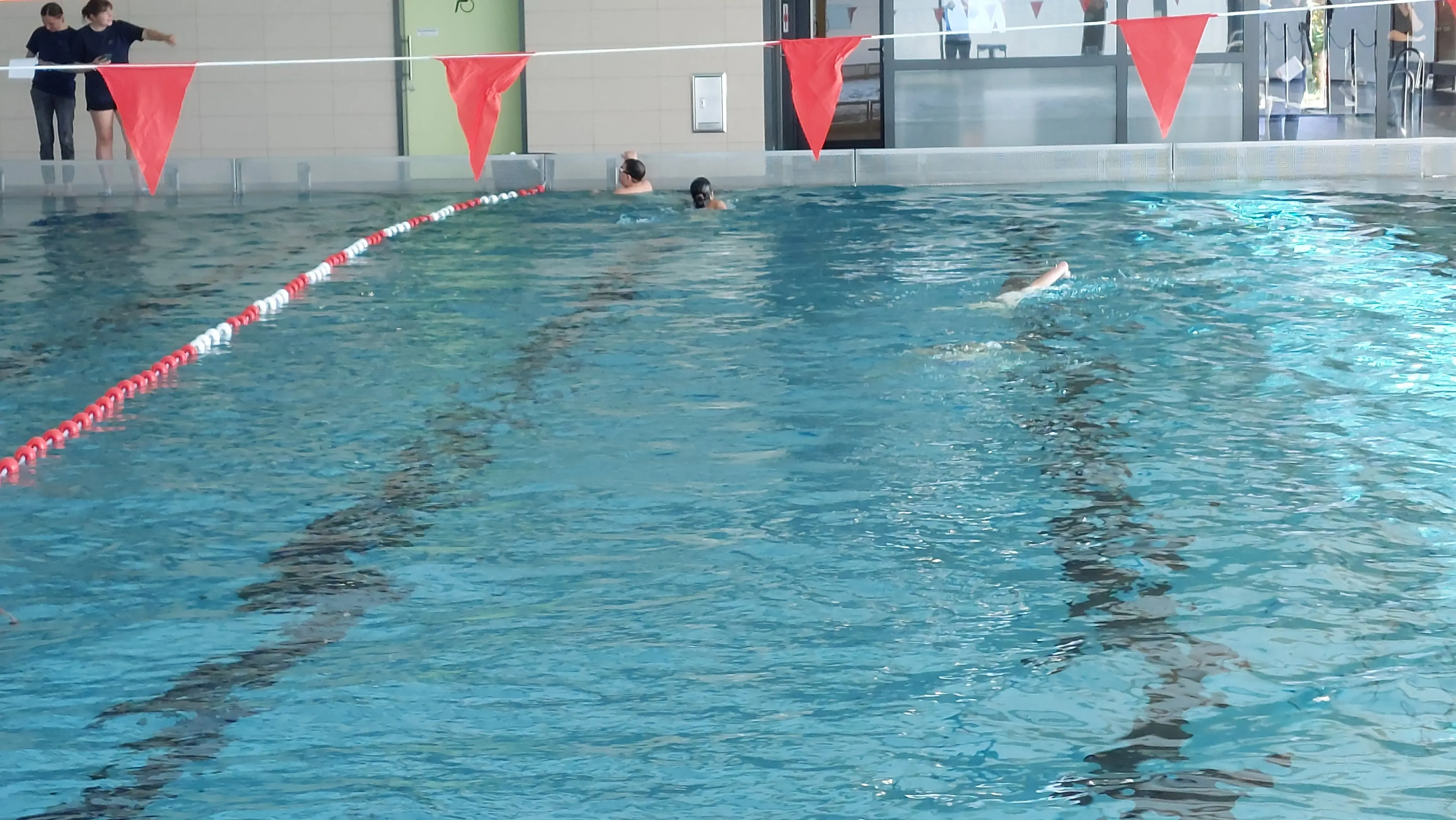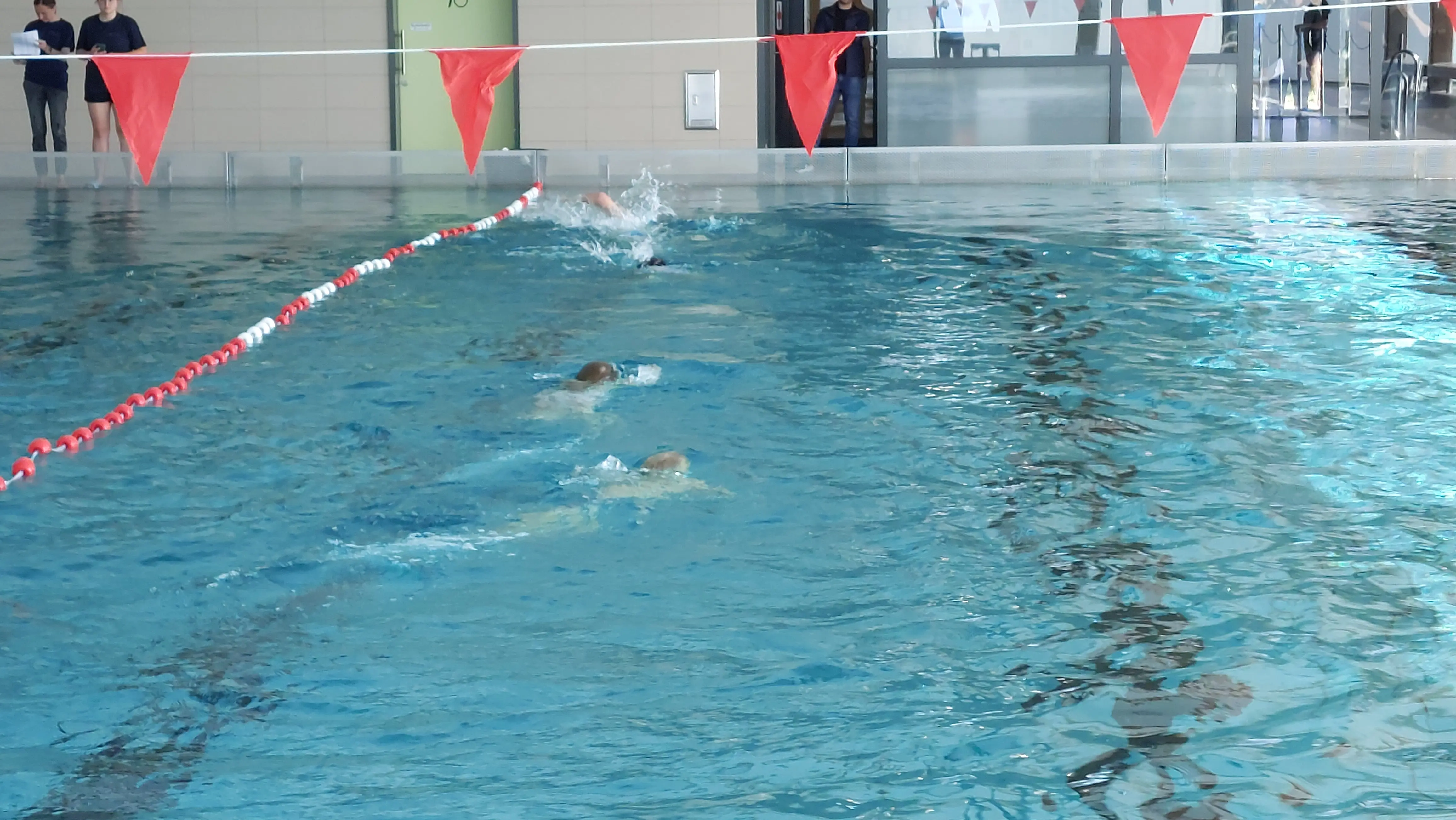 Beim Zieleinlauf nach 60 m Schwimmen und 600 m Laufen wurden die Teilnehmer/*innen mit einer Dance-Show der Cheerleader „Bears“ des SSK Kerpen e.V. in Empfang genommen.
