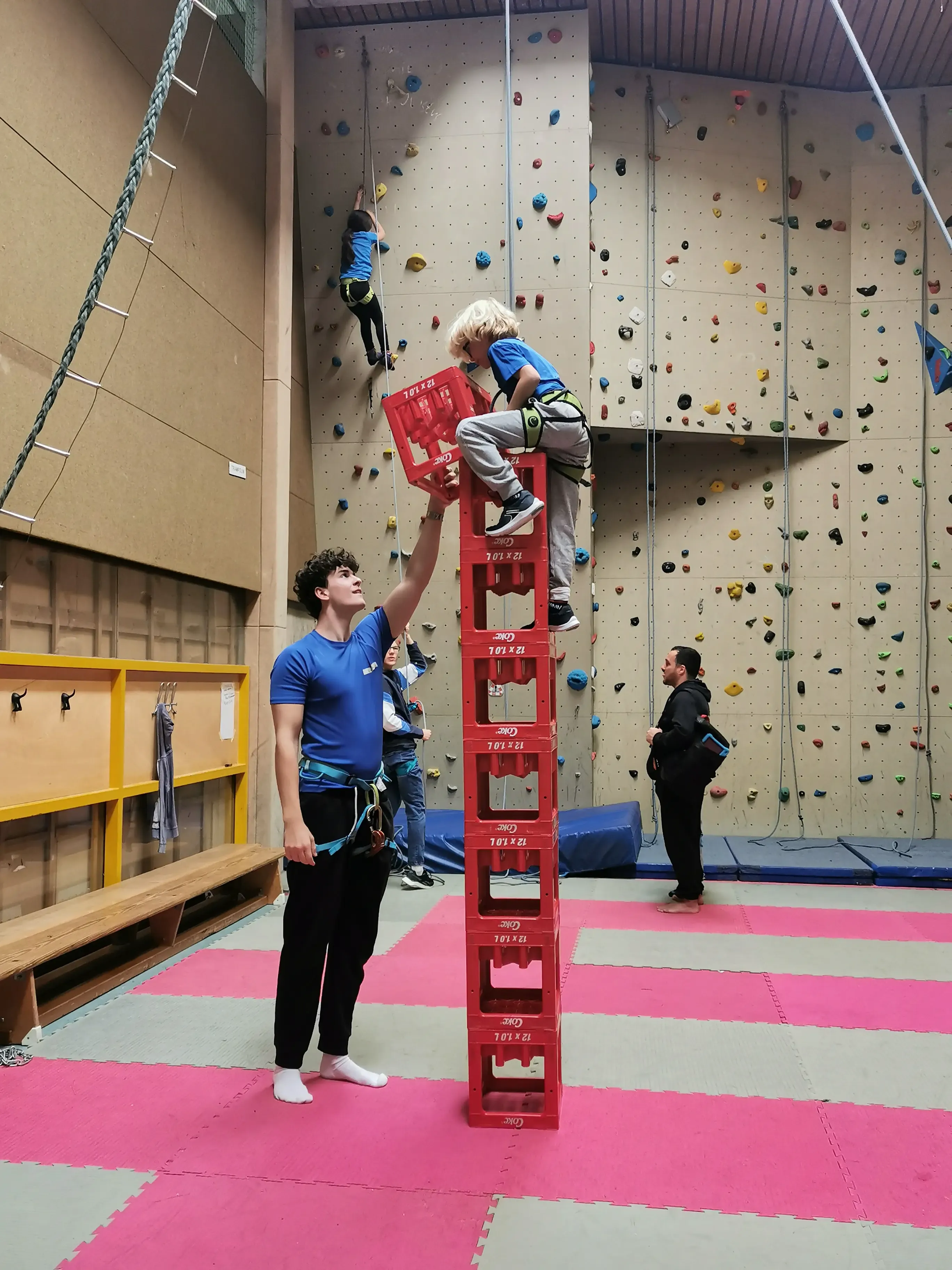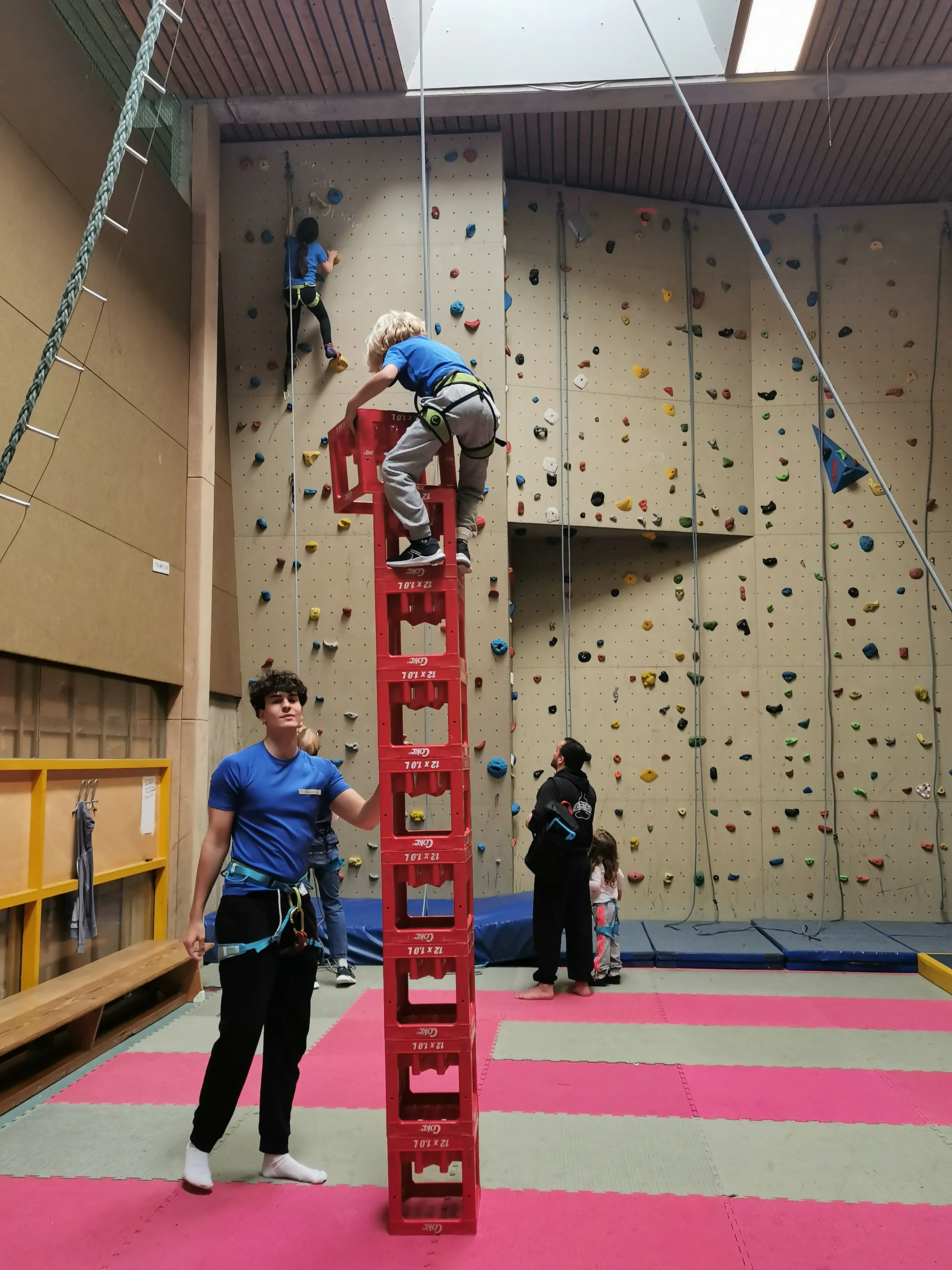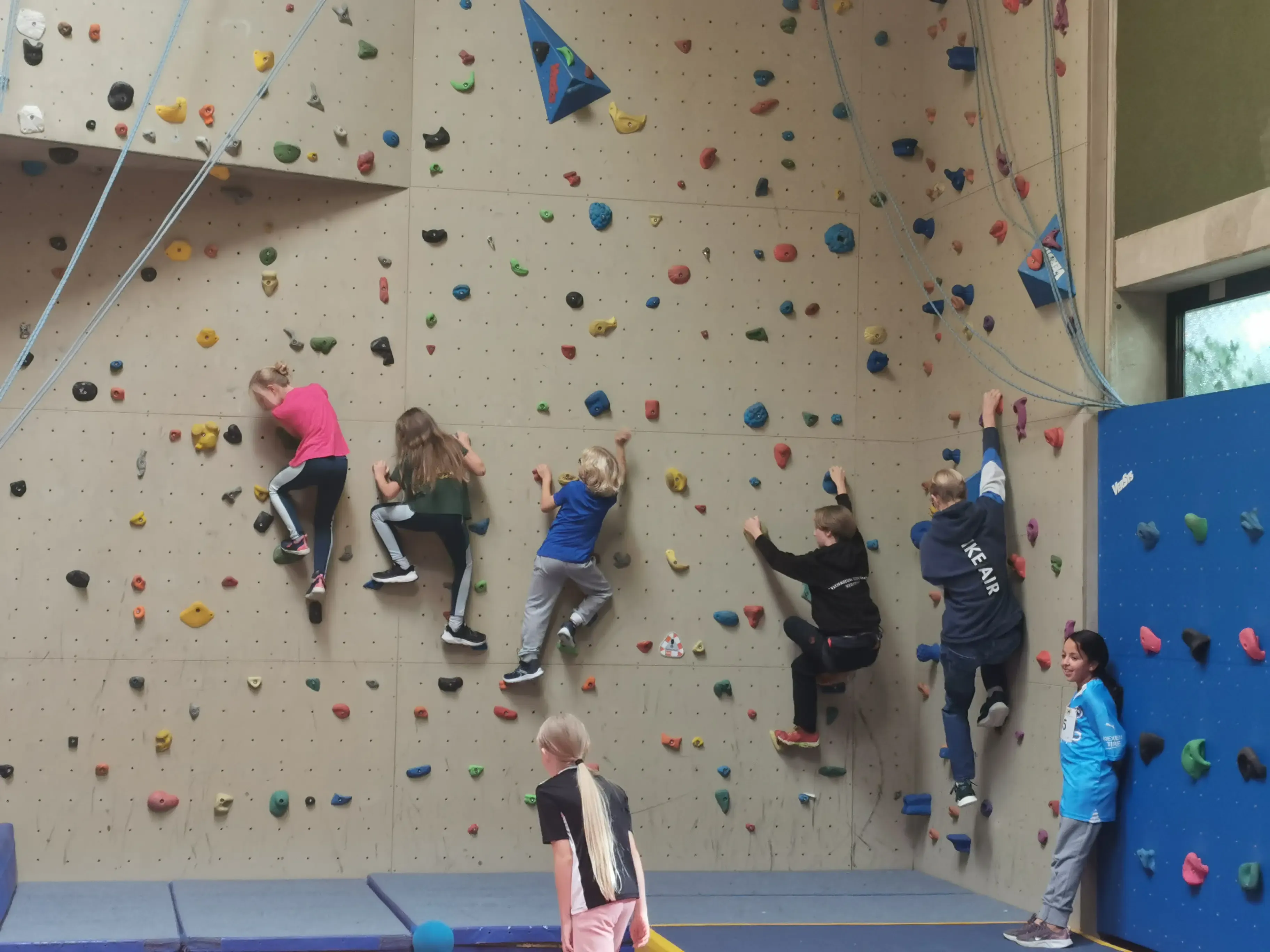 Rund um einen Wettkampf im Schwimmen, Laufen, Bogen- und Laserschießen, für den sich 28 mutige Teilnehmer/*innen fanden, wurden noch zusätzliche Sportmöglichkeiten geboten. Neben Workshops in den Sportarten Sportklettern und Aikido wurde das klassische Torwandschießen und eine kostenlose Hüpfburg für die Kleinsten angeboten.