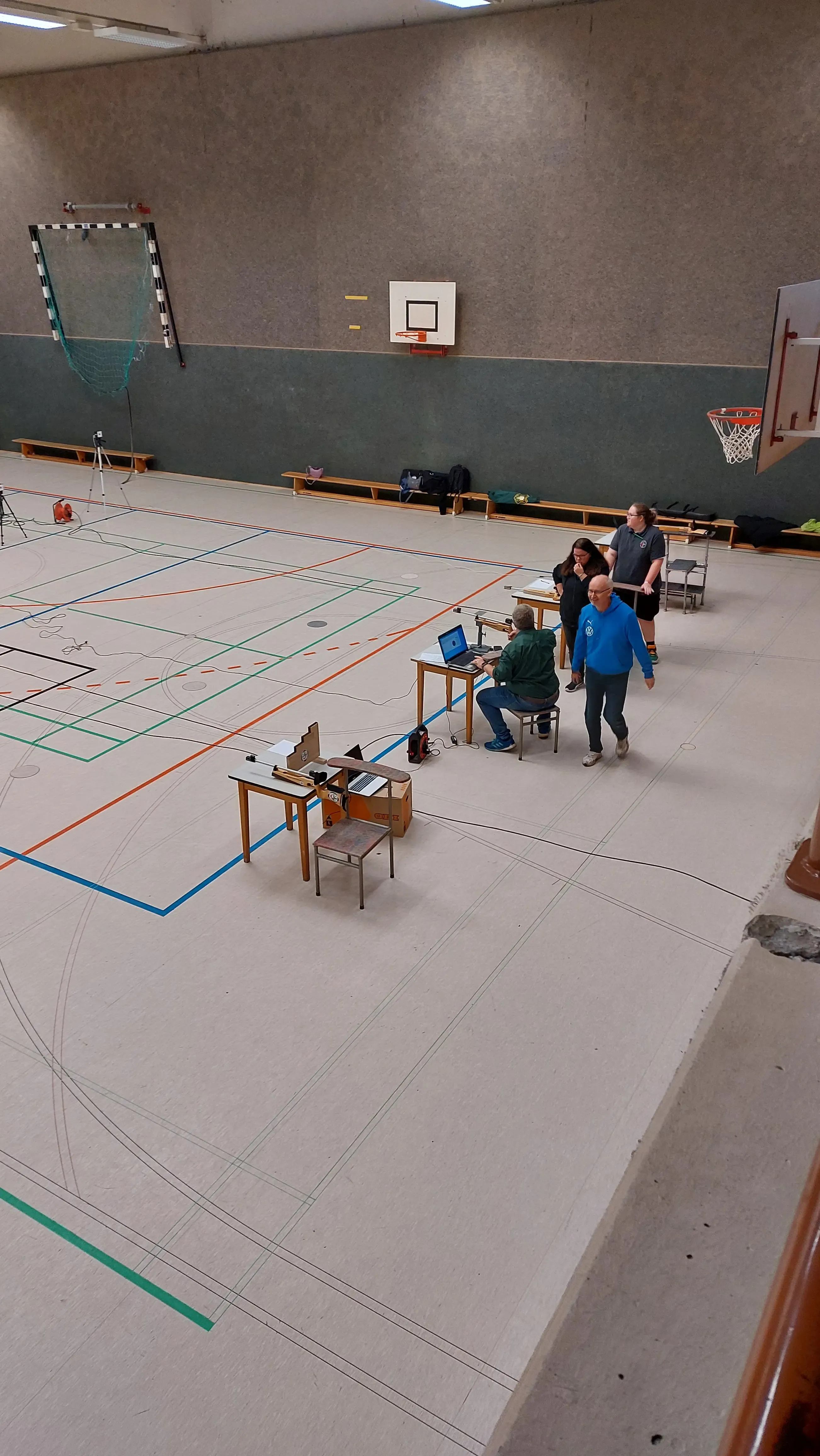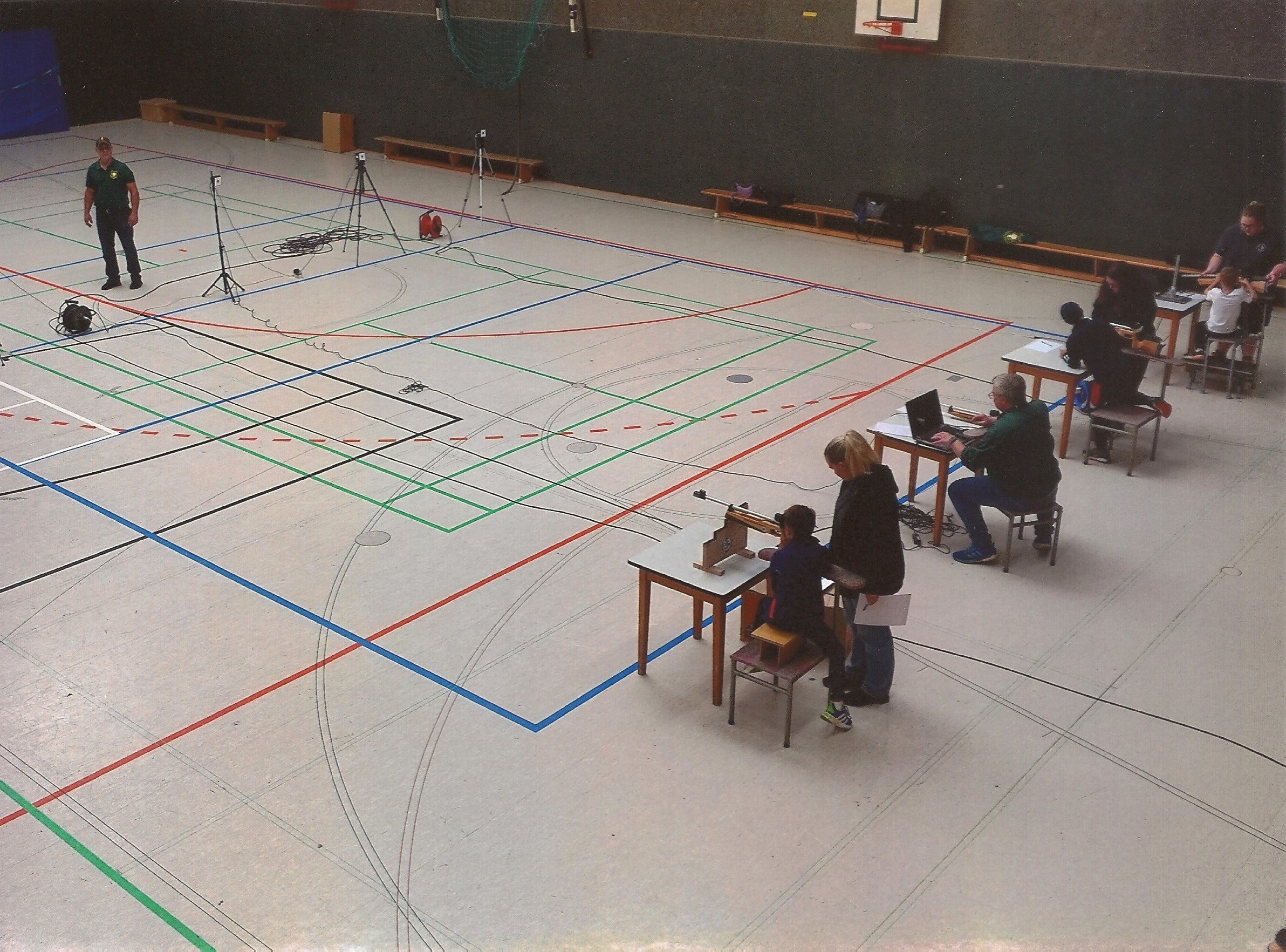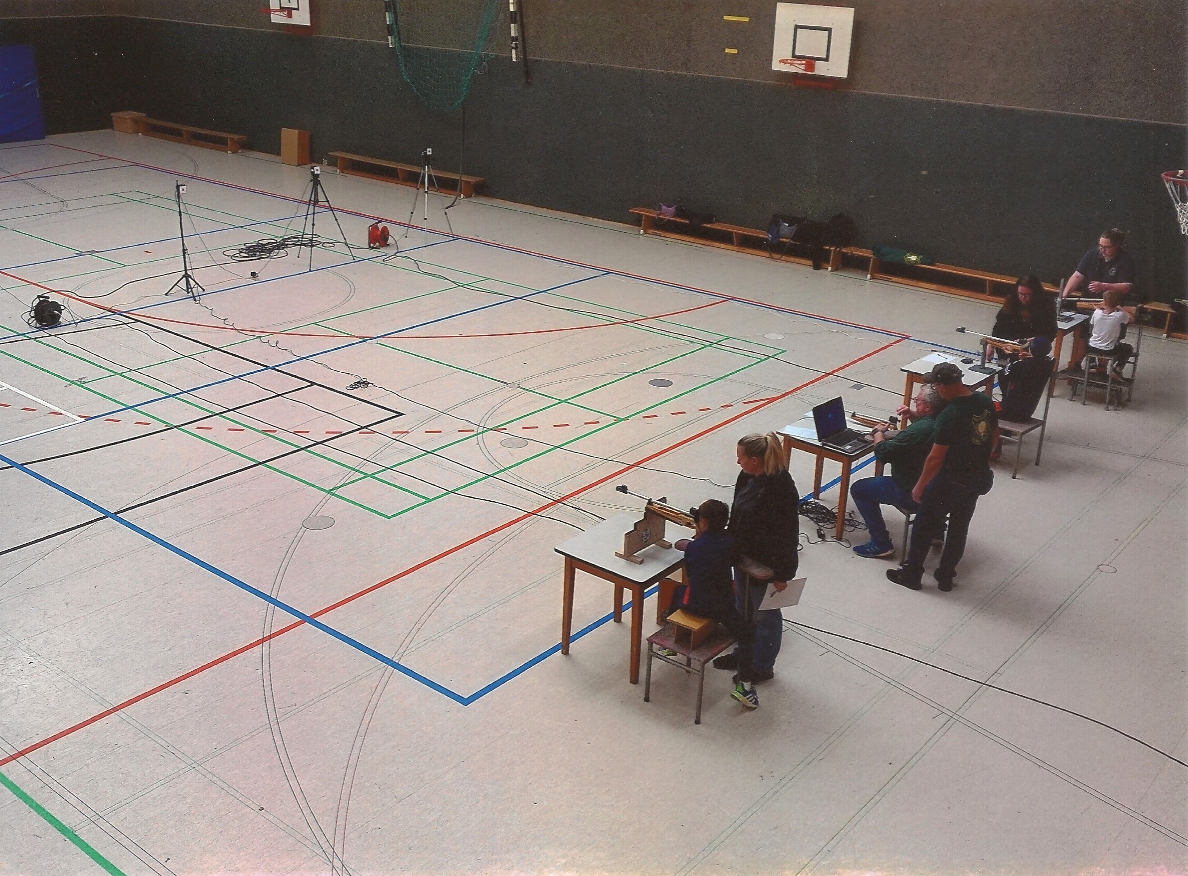 Nach dem Laufen stand dann für alle Teilnehmer die Disziplin Laserschießen an. Hier hatte es der Bezirksverband Kolpingstadt Kerpen der Schützen mit der St. Hubertus Schützengilde Kerpen von 1842 e.V. möglich gemacht, dass sich alle Teilnehmer an vier Schießständen diesem Sport nähern konnten. Nach einer kurzen fachkundigen Einweisung galt es mit 5 Schüssen möglichst viele Punkte zu erzielen.